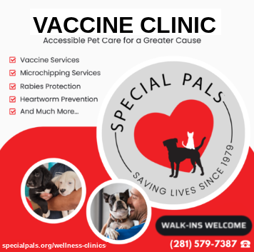 Special Pals 3830 Greenhouse Rd., HoustonWalk-ins only, no appointment needed! Our walk-in low-cost shot clinic offers yearly vaccines, preventative flea and heartworm medication, heartworm testing, and microchipping. We are not a full-service vet and have a limited number of services. Please keep your pal safe by bringing them to our facility on a leash or in a carrier. Thank you […]
